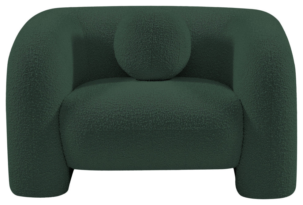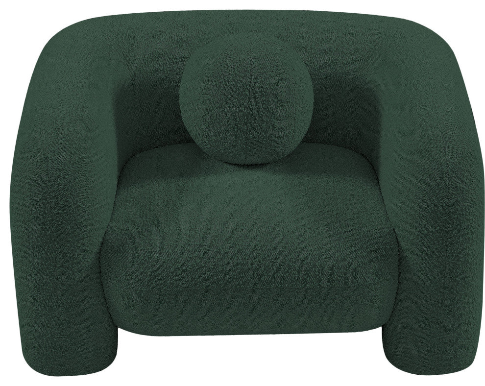 The Emory Chair draped in the rich green boucle fabric is a sight to behold. Its captivating elegance is matched only by its comfort, making it the epitome of style and relaxation. The texture of the fabric adds depth and dimension to the chair, making it a stunning addition to any room. With its sleek design and cozy feel, the Emory Chair is the perfect place to unwind and indulge in a moment of pure luxury.Overall Product Dimensions: 44" W x 34" D x 27" HRich Green Boucle FabricBall Pillow IncludedArt Deco DesignSeat Dimensions: Seat Width: 25.5"Seat Height: 17.5"Seat Depth: 24"Arm Height: 27"Back Height: 9.5"
