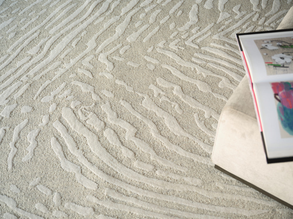 The large patterns feature the use of 100% Wool Fiber. A combination of cut and loop pile, in tone-on-tone colors compliment the large-scale patterns. In addition to its visual appeal and softness a wool rug is a great choice for durability and sophistication of this group for years to come.