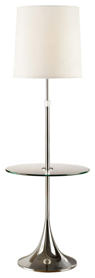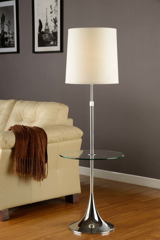 Featuring a chrome finish, this adjustable height ENZO floor lamp from Artiva brings chic accent lighting to your home or office. This stylish floor lamp has a convenient sofa-height tempered glass table/tray.