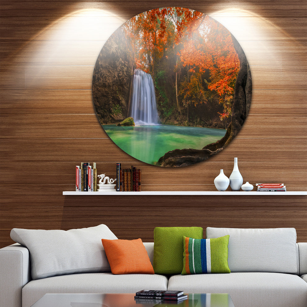Erawan Waterfall, Photography Round Wall Art, 11"
