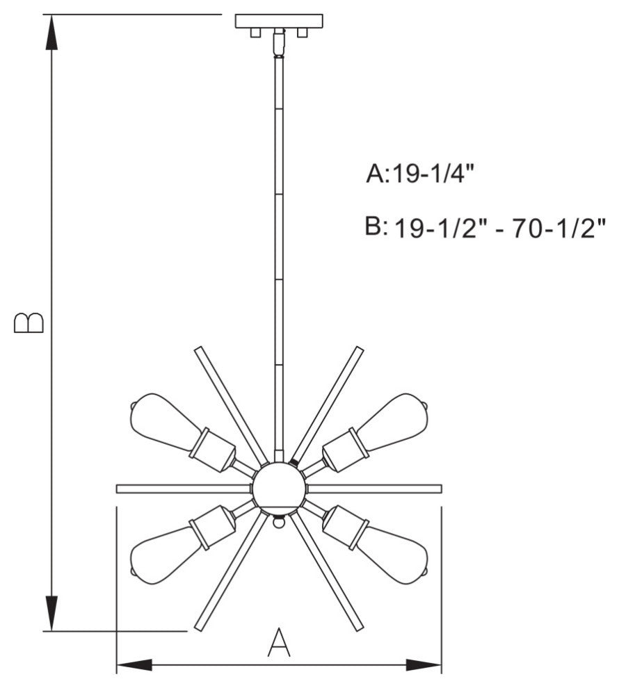 Mid-century meets modern with this timeless and uniquely artistic sputnik pendant from the Estelle collection. It features six exposed bulbs, adding elegance and drama to your dining room, living room, foyer, kitchen, or bedroom. Available in natural brass and polished nickel finish that complements just about any decor. Combine that with a vintage Edison style filament bulb to complete the look.