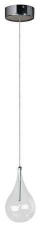 One Light Pendant from Larmes collection in Polished Chrome finish. Number of Bulbs 1. Max Wattage 20.00 . No bulbs included. A simple idea gracefully executed in the Collection. Row upon row of Clear oversized teardrops, mounted onto an extended Polished Chrome lamp holder that supports xenon lamps, sets the stage. Individually adjustable drops for custom stagger effects allow for dramatic impact. An added benefit of each drop being aircraft cable-suspended, is the ability to adjust the overall height of the piece to fit the space. The final result is stark and stunning. No UL Availability at this time.