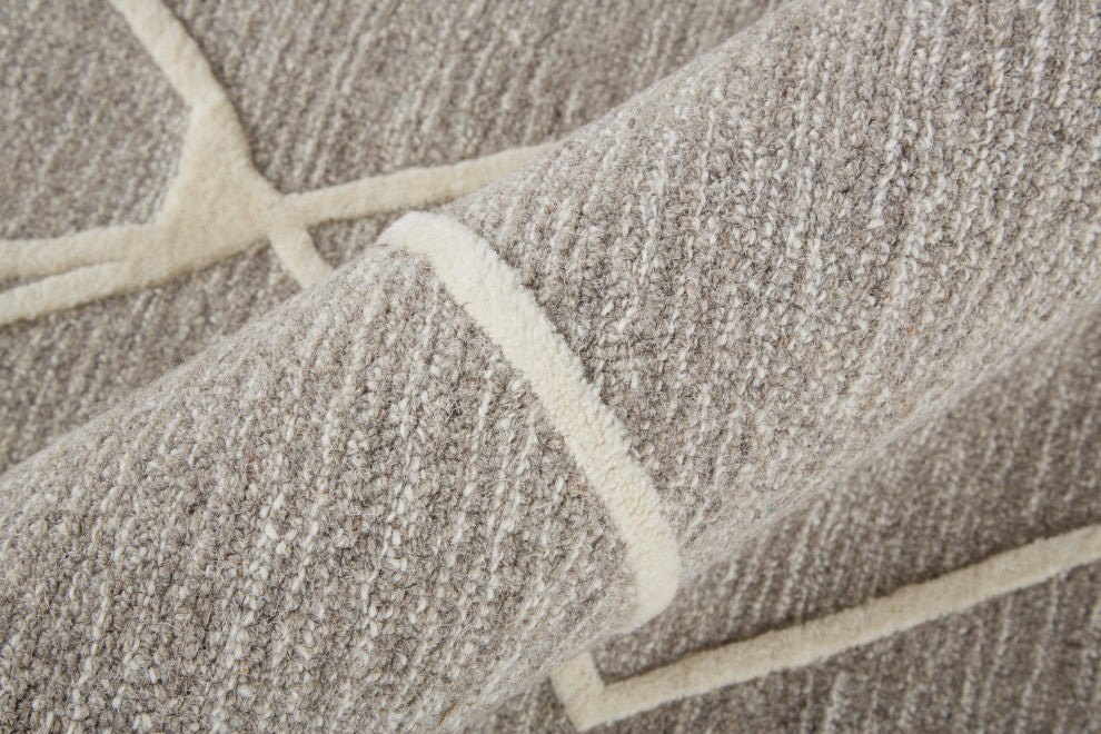 The Euclid Collection by Thom Filicia showcases the versatile beauty of natural wool. Each rug is hand-tufted by skilled craftsmen in India that create accentuated organic patterns with a 3D textured effect. Featured in a natural undyed wool pile, the colors reflect the Euclid"™s easy, earthy essence, making it an ideal complement to a composed aesthetic for your living room, bedroom, or home office. • Features: Stain Resistant, Kid Friendly, Handmade • Hand Tufted construction• Made of Wool• Ideal room placement includes Foyer/Entryway, Office, Dining Room, Living Room, Bedroom• Made in India• To preserve the life of the rug vacuum regularly using suction only, no bristles. For small spills or stains, use warm water and blotting. Check care label for any additional instructions • Thickness: 0.31 inch pile height• Colors: Taupe/Ivory/Gray• Pattern: Abstract/Geometric• Style: Transitional/Industrial/Farmhouse
