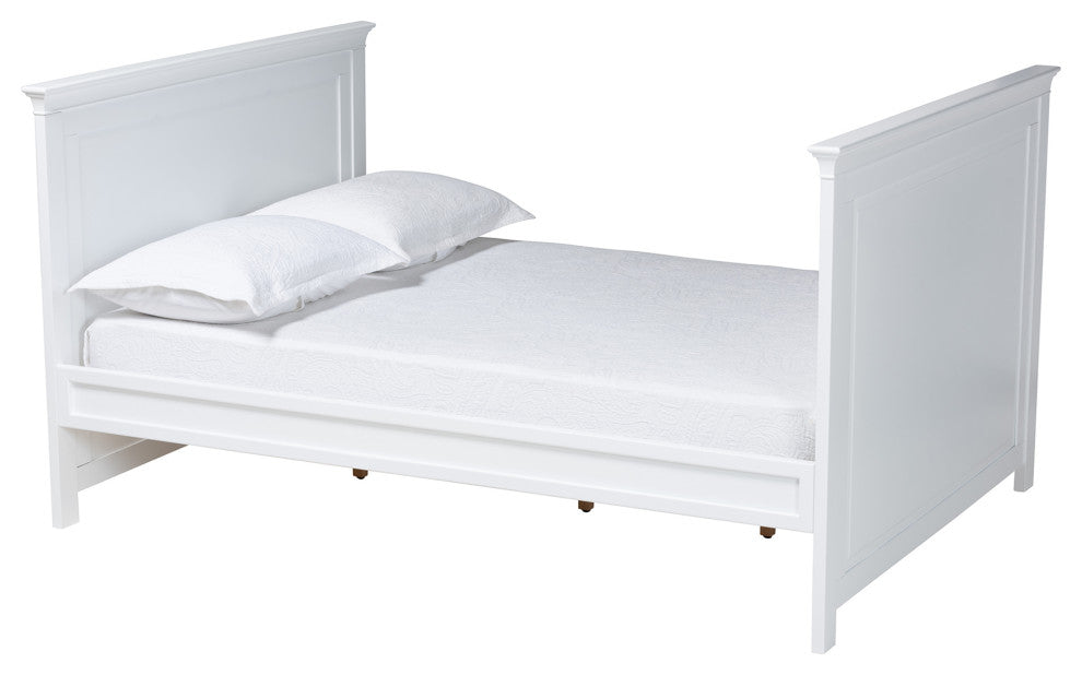 A beautiful balance of cozy elegance, the Eulalia daybed blends brings classic charm to any bedroom. Made in Malaysia, this lovely piece is crafted from solid wood. The prominent headboard and footboard create a stunning oasis to relax and rejuvenate while inset paneling accents the piece with traditional flair. The Eulalia requires assembly and utilizes wood slats for mattress support, eliminating the need for a box spring. Radiating timeless character through bold symmetry, the Eulalia daybed is sure to become a beloved centerpiece of any bedroom setting.