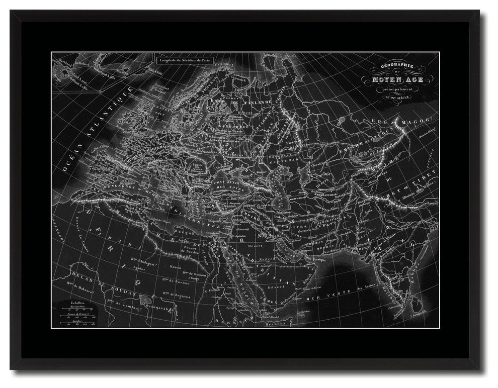 Europe In The Middle Ages Crusades Vintage Monochrome Map Canvas, 28"x37"