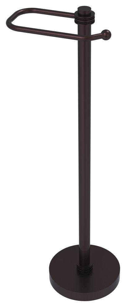 This elegant free standing toilet tissue stand provides a decorative touch to your bathroom. European styling makes changing the roll quick and easy. This toilet tissue stand is a great product when wall space is at a premium. Made of the finest solid brass materials with a sturdy base that will keep the stand secure. Designer finishes will provide a lifetime of use.