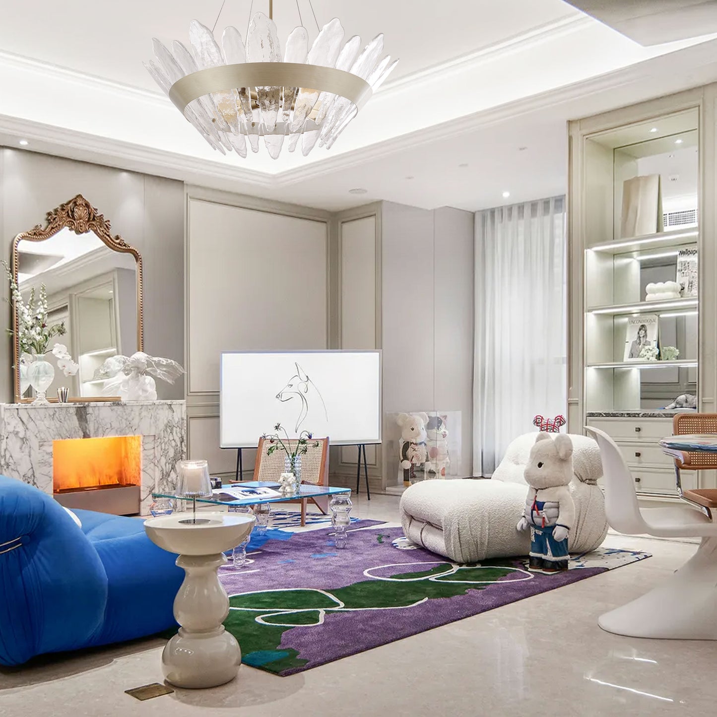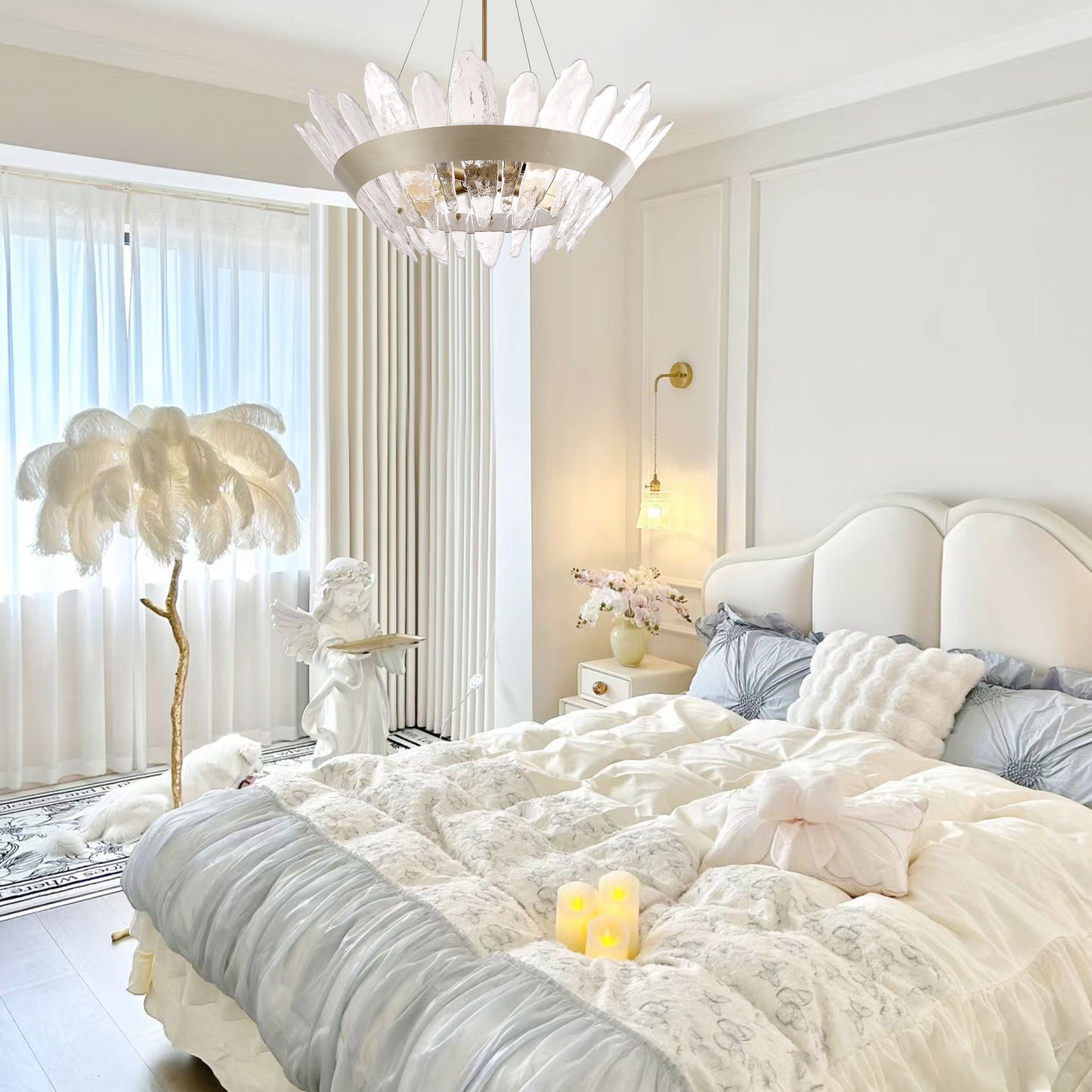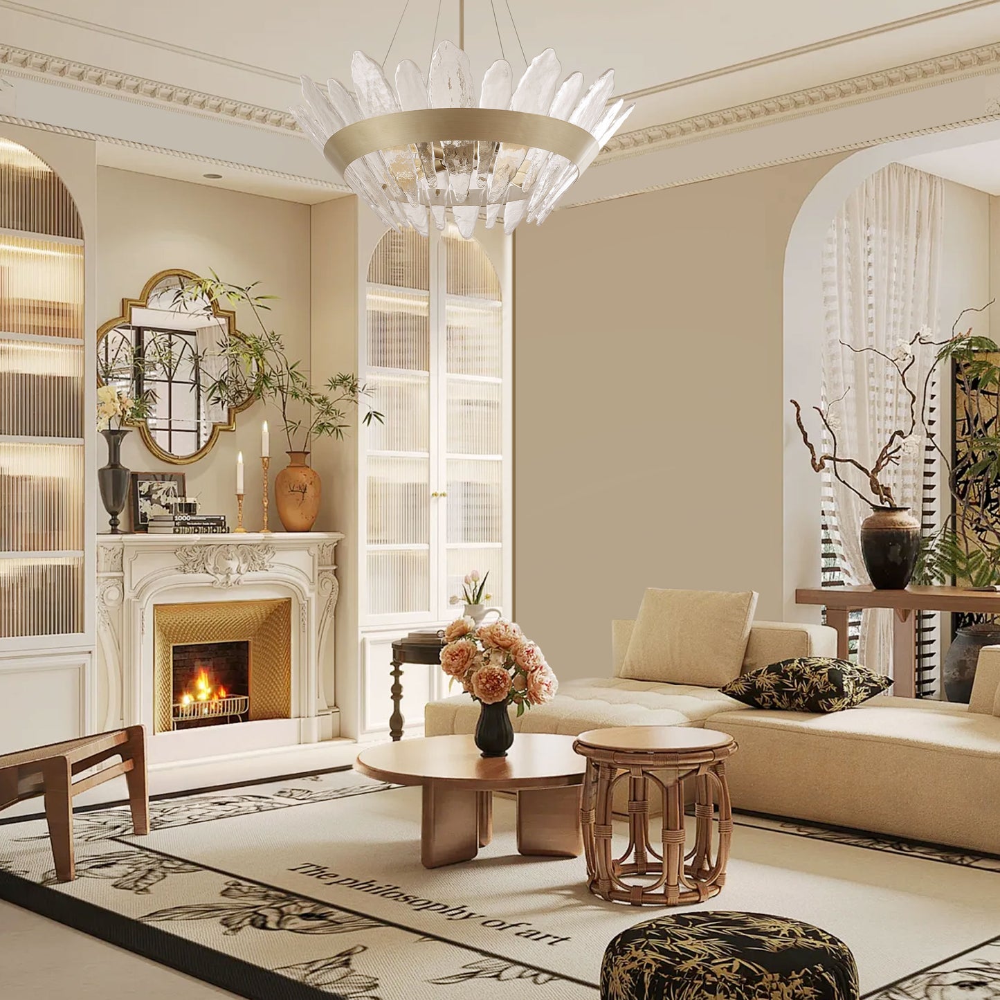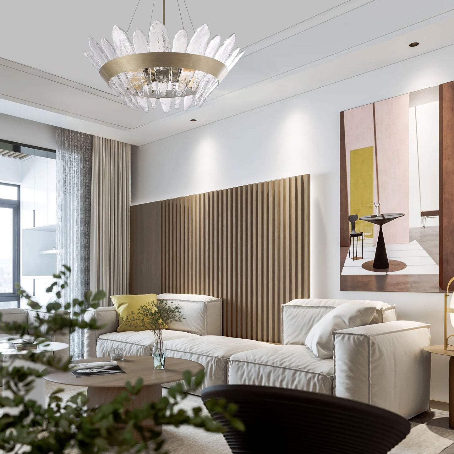 Eva 4-Light 29" Modern Handcrafted Glass Chandelier Brushed Champagne Silver