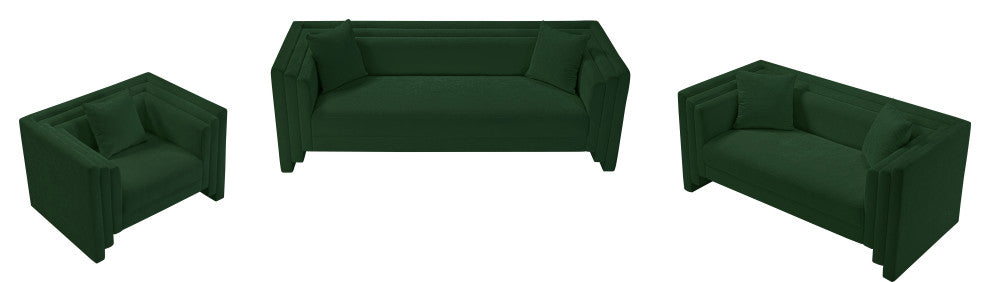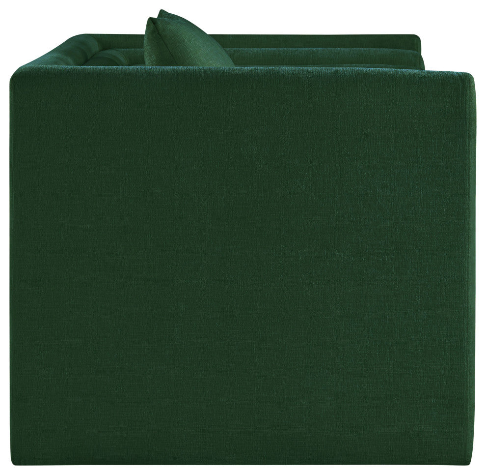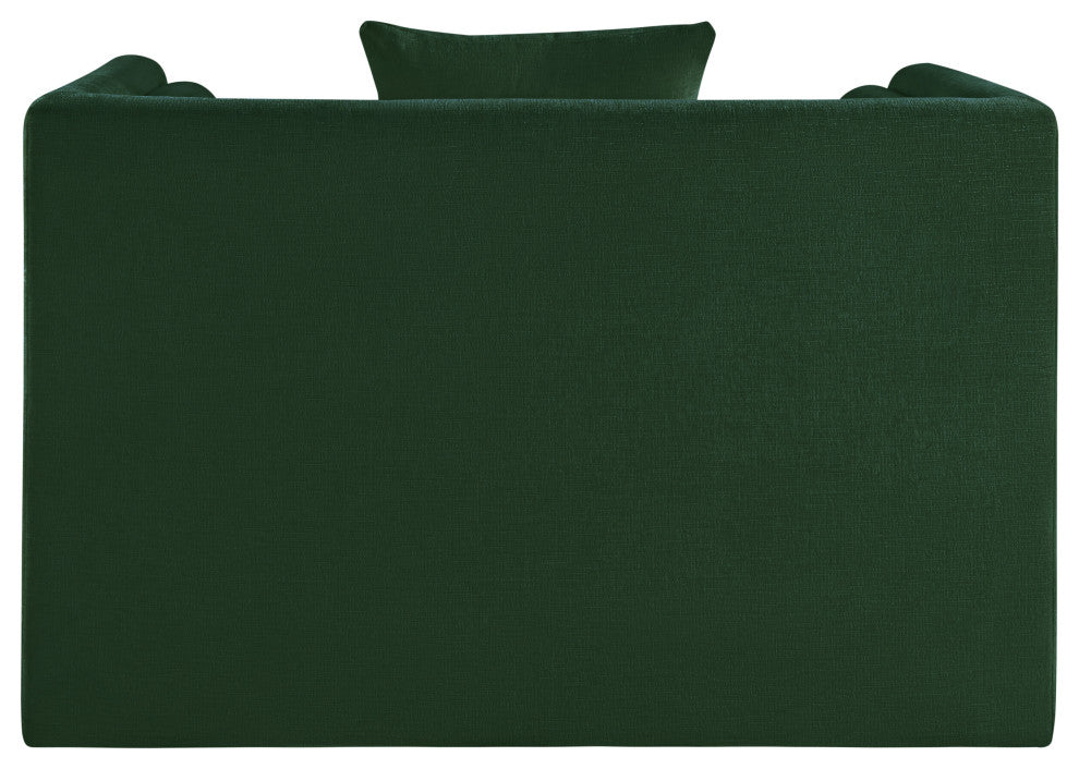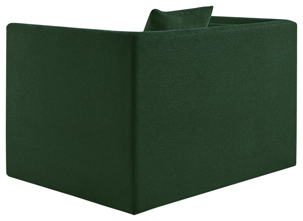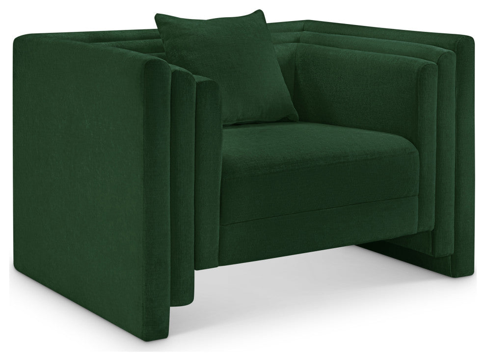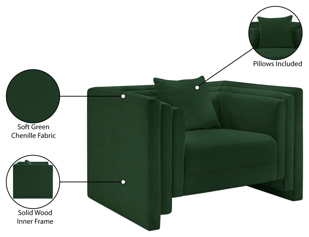 Make this Everett green chenille fabric chair the center of a cozy reading nook. Handsome from every angle, this posh chair is plumply appointed to put supreme comfort within easy reach. Soft green chenille upholstery fabric adds to its lavish feel while a staggered design gives it a modern edge. An included pillow gives it a beckoning vibe while the chair''s solid wood inner frame makes it a lasting addition in any room.Overall Product Dimensions: 45" W x 34" D x 29" HSoft Green Chenille FabricSolid Wood Inner FramePillows IncludedContemporary DesignSeat Dimensions: 26" W x 24" D x 19" HArm Height: 30"Back Height: 30"