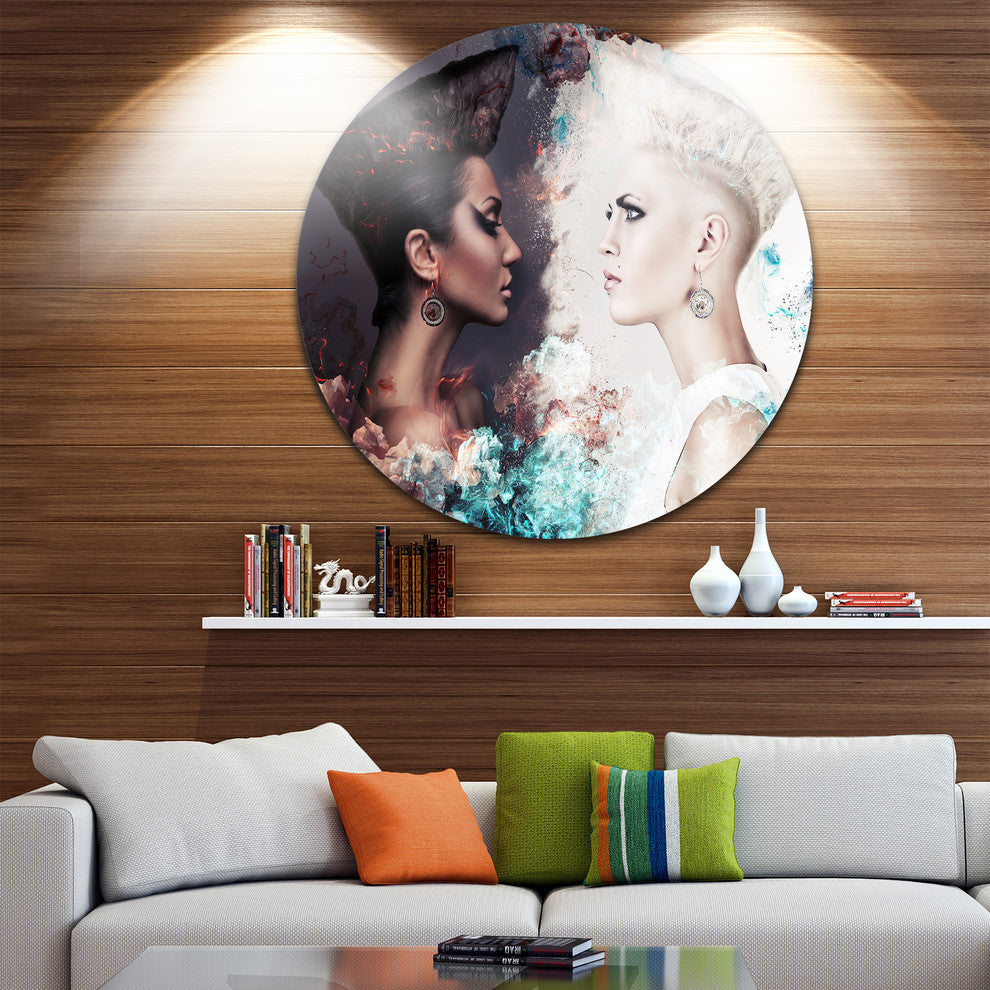 Evil And Good Women Face To Face, Art Portrait Round Wall Art, 23"
