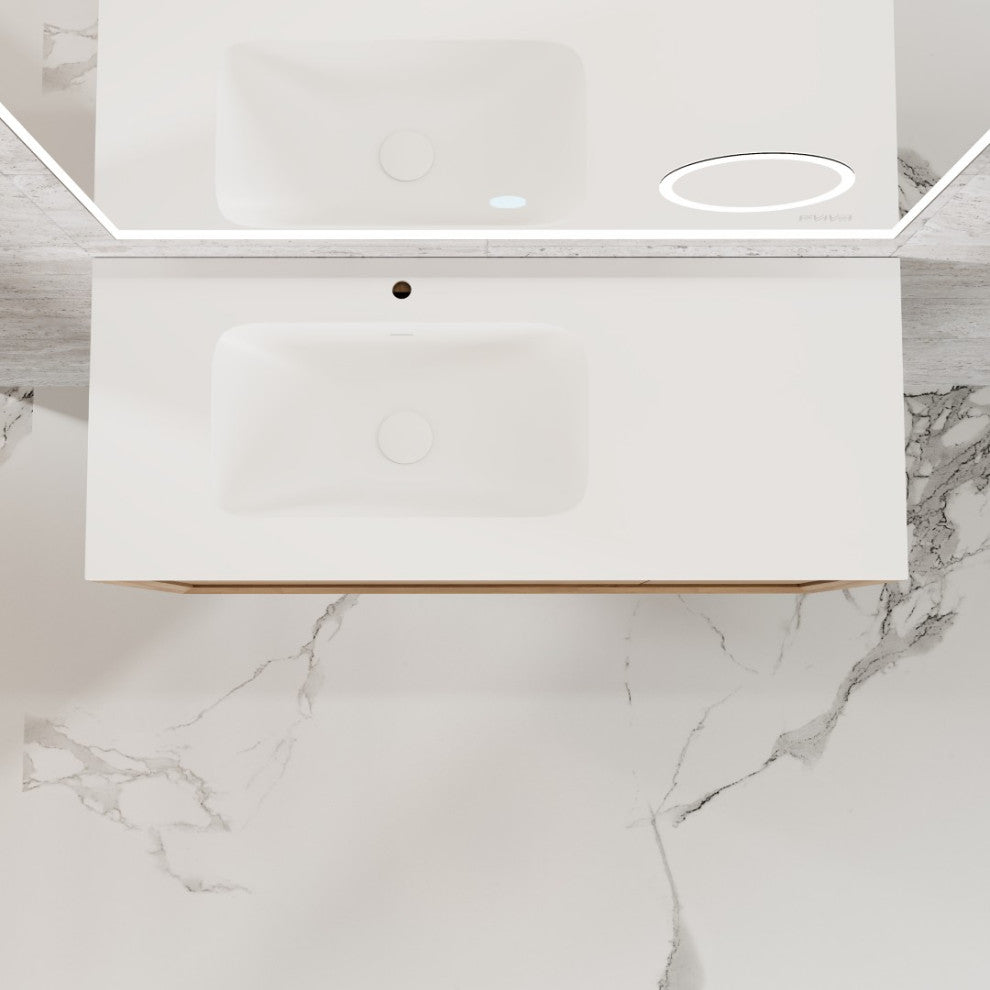 The Eviva Prancer wall-mount bathroom vanity is a stylish modern solution that features a combination of oak wood finish and an integrated solid sink. The vanity has a beautiful Spanish design that''s considered a real complement to any modern bathroom decor. The vanity features spacious drawers for your everyday needs and to keep your space clean and organized. Additionally, the installation of this vanity is easy. It is made to be mounted to the wall and requires minimal assembly.