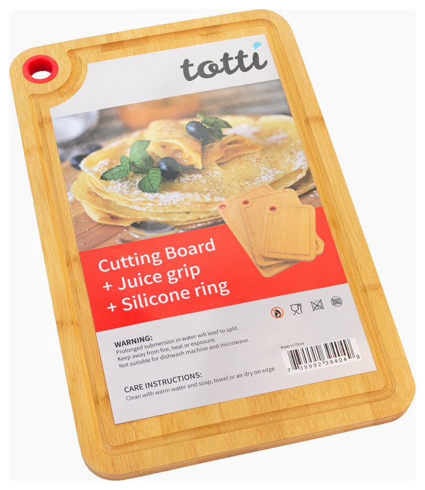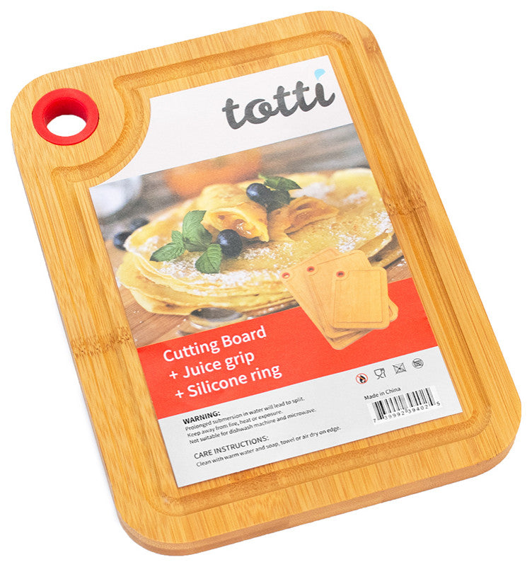 Eviva Small Bamboo Cutting Board With Juice Groove and Silicone Ring