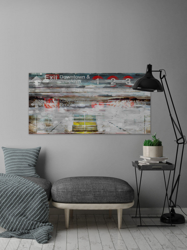 Striking and unique, the "Exit Downtown" Print on Canvas by Parvez Taj will bring your walls to life. Printed on canvas, this 24 inch wide by 12 inch tall contemporary artwork will make a statement in any living room, dining room, or bedroom.- Fine art canvas print by Parvez Taj- Professionally hand stretched- Gallery wrapped in sustainable, non-warping wood- Arrives ready to hang- Made in the USA- Includes a certificate of authenticity- Artist signature on the front