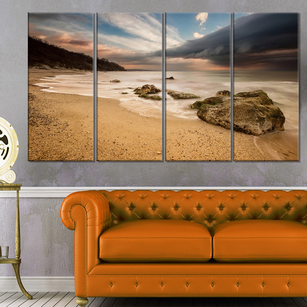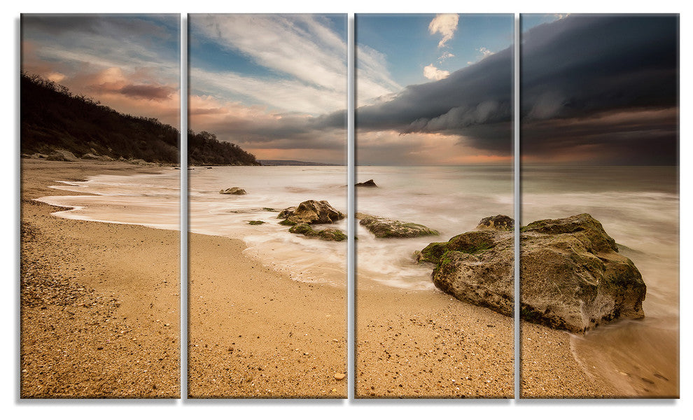 "Exotic Seashore With White Waves" Beach Canvas Wall Art, 4 Panels, 48"x28"