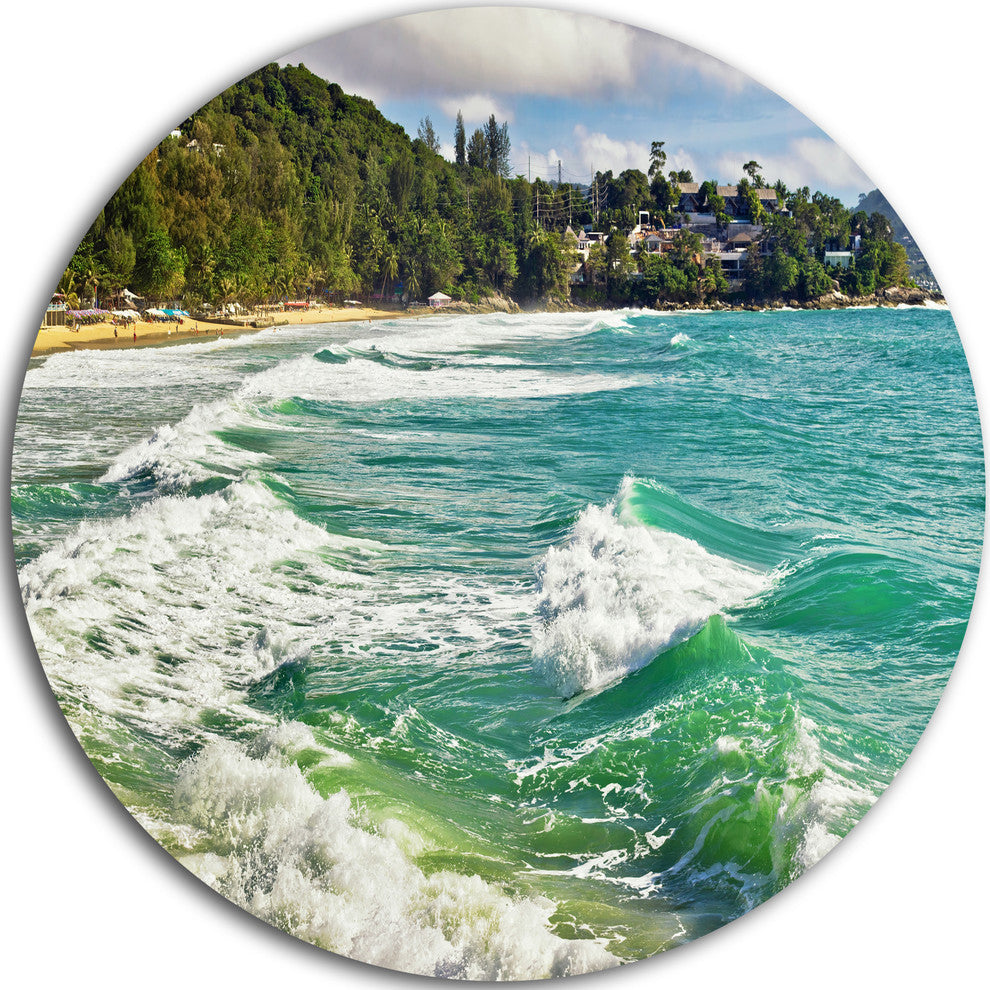 Bring Contemporary Abstraction to your home with this large Circle Metal wall art. This Exotic Tropical Beach Blue Waters Metal Artwork makes it the focal point of any room or office.