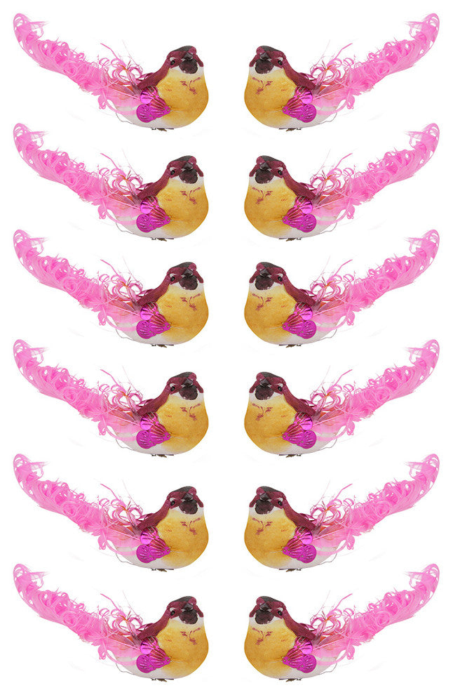 Exquisite Pretty in Bird Christmas Ornaments, Pink, Set of 12, 5.75"