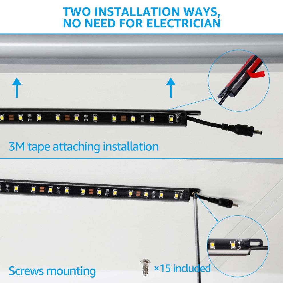 Comparing to battery operated lighting system, this electrical powered light kit is more suitable for permanent installation as it supplies more long-lasting and constant lighting. 150 lumens per light bar, high output LEDs provides an ultra-bright lighting effect but you never need to worry about batteries dying on you