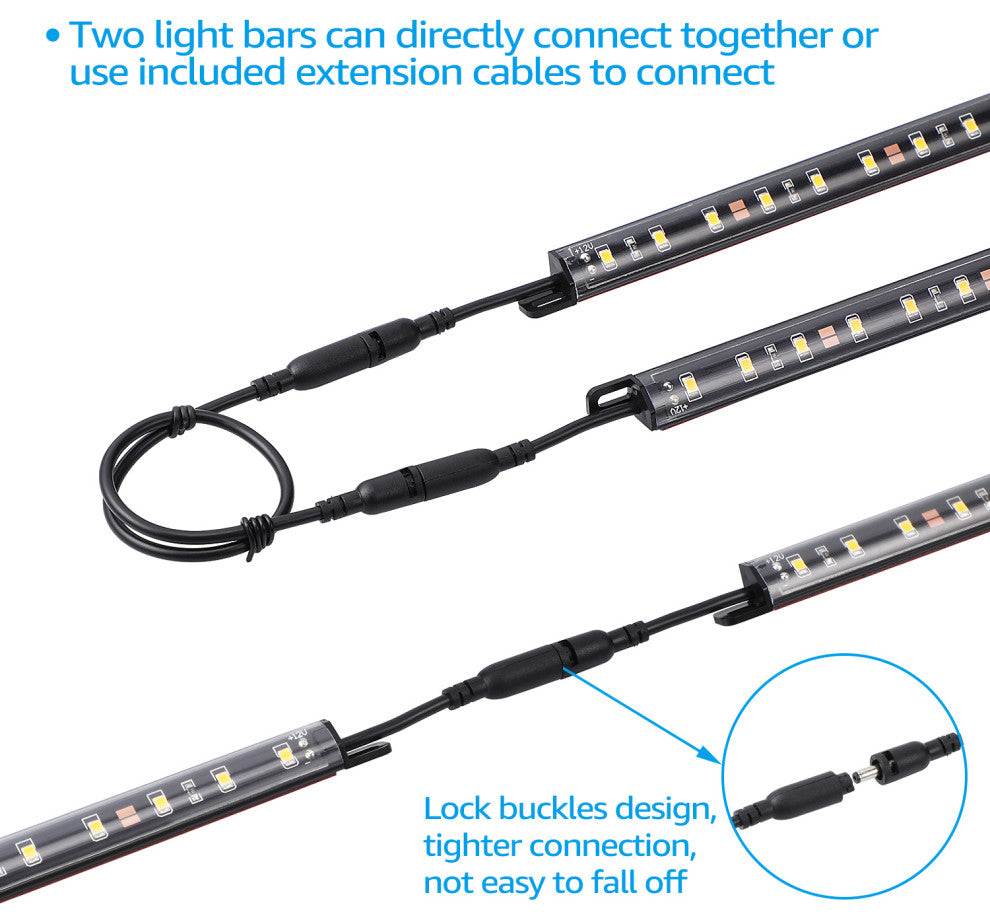 Additional light bars can be added to fit big size gun safe or long cabinet or counters. Extra extension cables included. Rocker switch enables full control of the light
