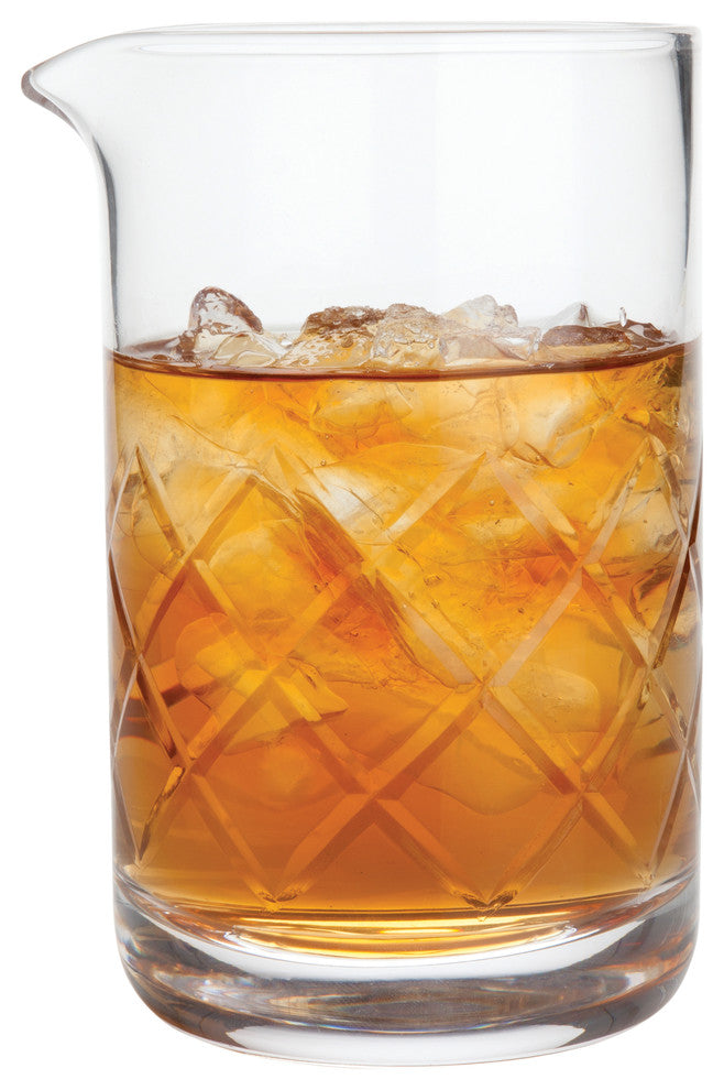 Designed and sized for expert bartending, the 800-milliliter professional-grade mixing glass accommodates one or two drinks and works smoothly in allegiance with our professional bar spoons and strainers. Features a thickset base, precision pour spout and strong, geometrically faceted sides.800 mLLead-free crystalHand wash recommended10.75" x 6.5" x 5.75"