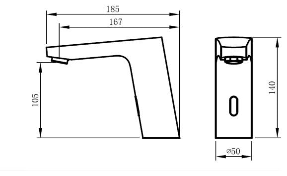 Fabiano Faucet Specifics : Type : Sensor FaucetModel Number : FS6107EFSurface Treatment : PolishedNumber of Handles : 0Water Pressure : 0. 05-0. 6MPaSurface Finishing : ChromeFaucet Mount : Single HoleFaucet height : 140mmSpout length : 185mmSpout Height : 105mmStyle : ContemporarySensing : Infra-red SensorChrome Plating : 24/48 Hours Salt Spray TestOperating Temperature : 0. 1-50 CBrand Name : FabianoFeature : Sense Faucets, Electric Faucets, Touchless, Hands freeInstallation Type : Deck MountedPower Supply : DC & ACSensing Distance : 16-32 cm or adjustableWater Supply : Cold or Pre-mixed Water Fabiano Features : Stable sensor, better quality, highest standard. Stability: the infra-red sensor emission adopts constant current circuit. The transmitter signal is stable even when the battery voltage changes. Automatic: it incorporates microcomputer control, and features anti-ultraviolet rays and automatic time-out shut off. Water saving: automatic shut-off water saving flow control. Hygienic: faucet readily activated by the human hand entering the sensor zone rather than being directly under the faucet. Energy saving: battery powered, operates on 4 x AA alkaline batteries, which last over 100. 000 flushes. Power : DC: 6V(4AA alkaline battery) / AC: 220V-240V; 50/60HZWater Consumption : 0. 05Mpa-0. 6MpaFlow Rate: Maximum 1.8 GPMAerator Included: Minimum .5 GPMDetection Zone : 16-32 cm or adjustableMotor Valve Lifespan : up to 500000 FlushesBattery lifespan : 100000 cyclesStatic Power Consumption : 0. 36mwWorking Power Consumption : 0. 5mwInductive Opening Time : < 1 secondInductive Closing Time : < 2 secondDia. of inlet/ outlet pipe : G1/2" Flux : 0. 07L/STemperature : 0. 1-50 CDia of Installing Faucet : 33~35mm or others