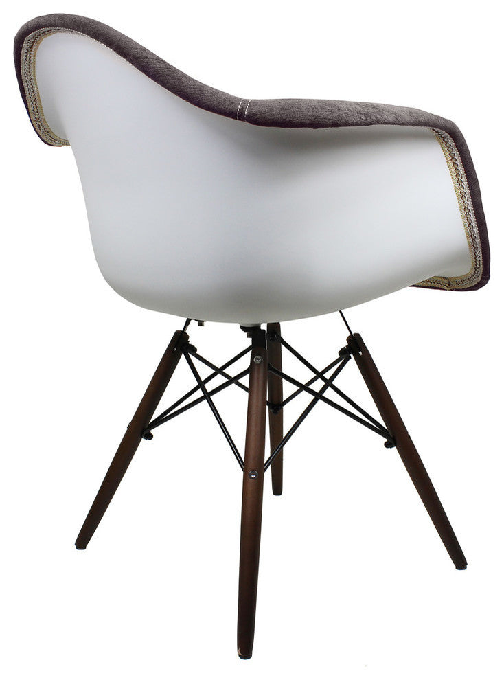 Fabric Upholstered Accent Arm Chair, Eiffel Steel Legs, Cocoa Brown