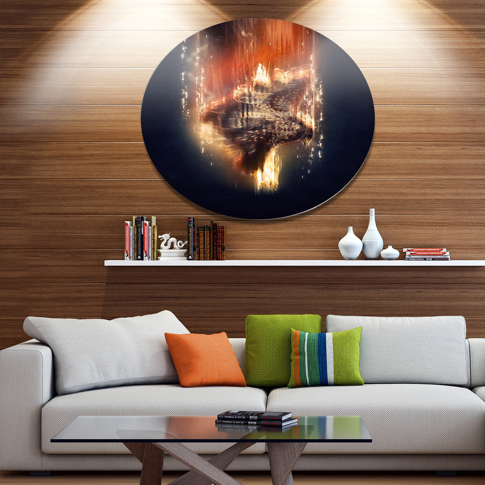 Bring Contemporary Abstraction to your home with this large Circle Metal wall art. This Large Falcon in Flight Metal Artwork makes it the focal point of any room or office.