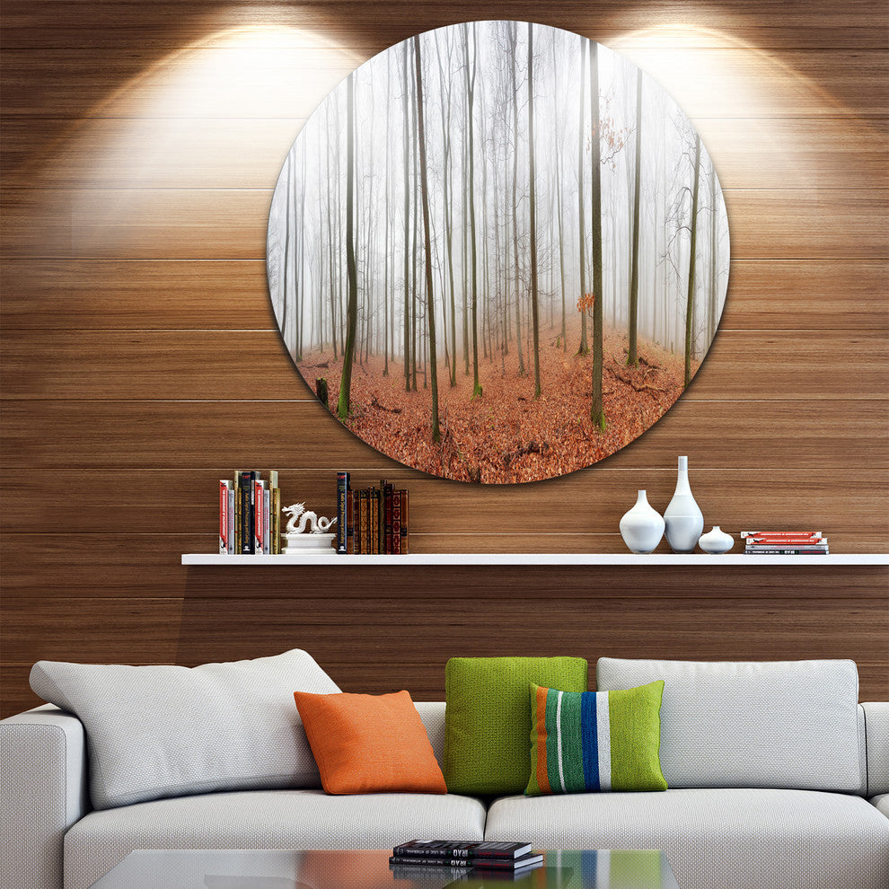 Fall Forest With Trees At Mist, Forest Round Metal Wall Art, 23"