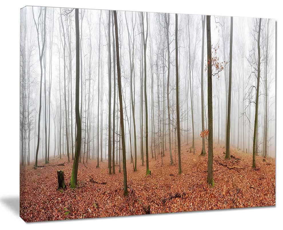 The Fall Forest with Trees at Mist canvas art print is sure to make an impression on anyone who sees it. This artwork is gallery wrapped around a 1-inch solid wood frame and arrives carefully packaged and entirely ready to hang on the wall. Design Art only uses the highest resolution and pigments to ensure a crisp colorful print that is never faded or pixelated. This artwork is sure to be a conversation starter in any home or office.