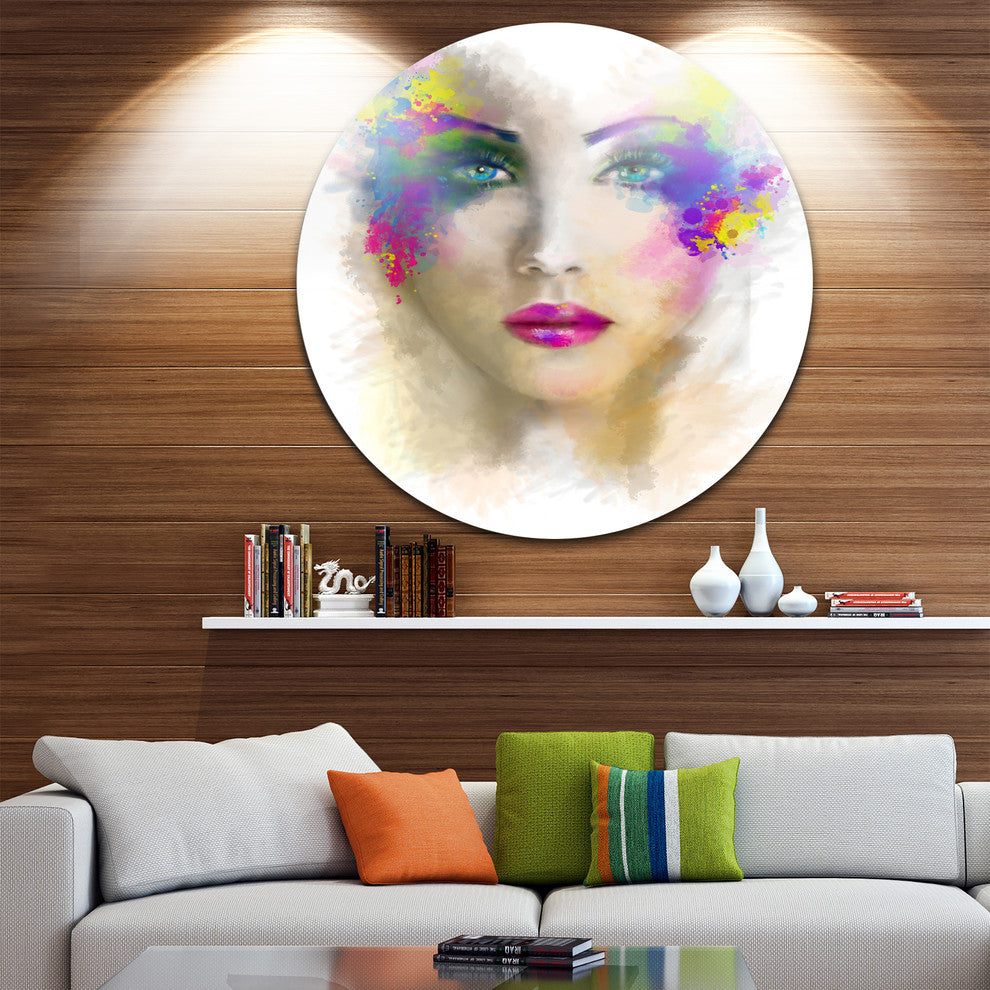 Bring Contemporary Abstraction to your home with this large Circle Metal wall art. This Fantast Woman with Blue Flowers Metal Artwork makes it the focal point of any room or office.