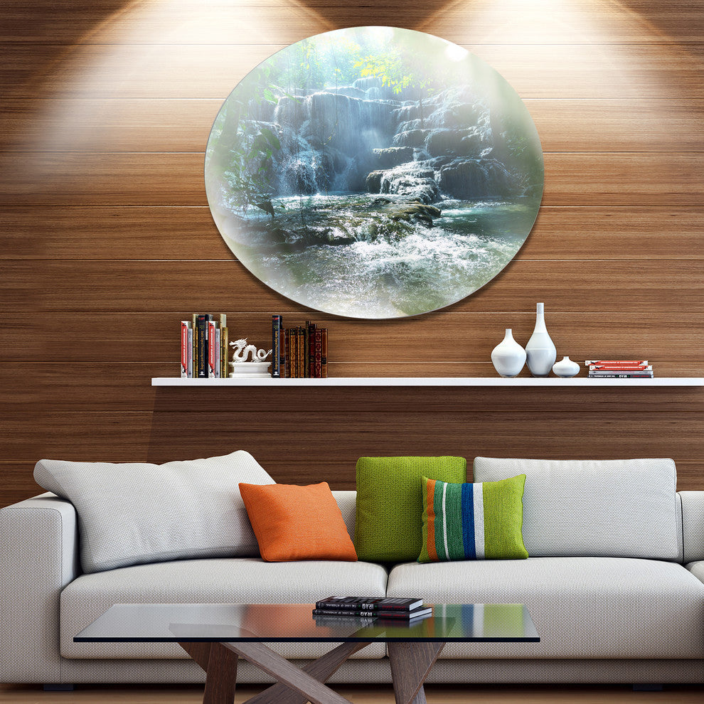 Bring Contemporary Abstraction to your home with this large Circle Metal wall art. This Fantastic Waterfall in Mexico Jungle Metal Artwork makes it the focal point of any room or office.