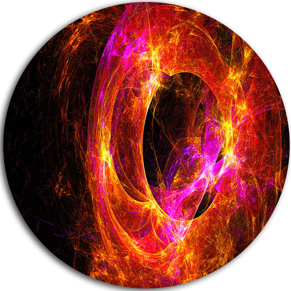 Far Spherical Galaxy Red, Abstract Digital Art Round Metal Artwork, 11"