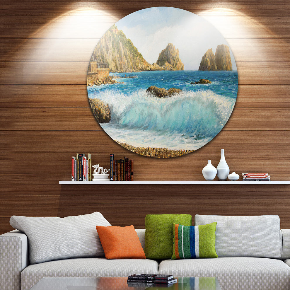 Faraglioni On Island Capri, Seascape Painting Disc Metal Wall Art, 11"
