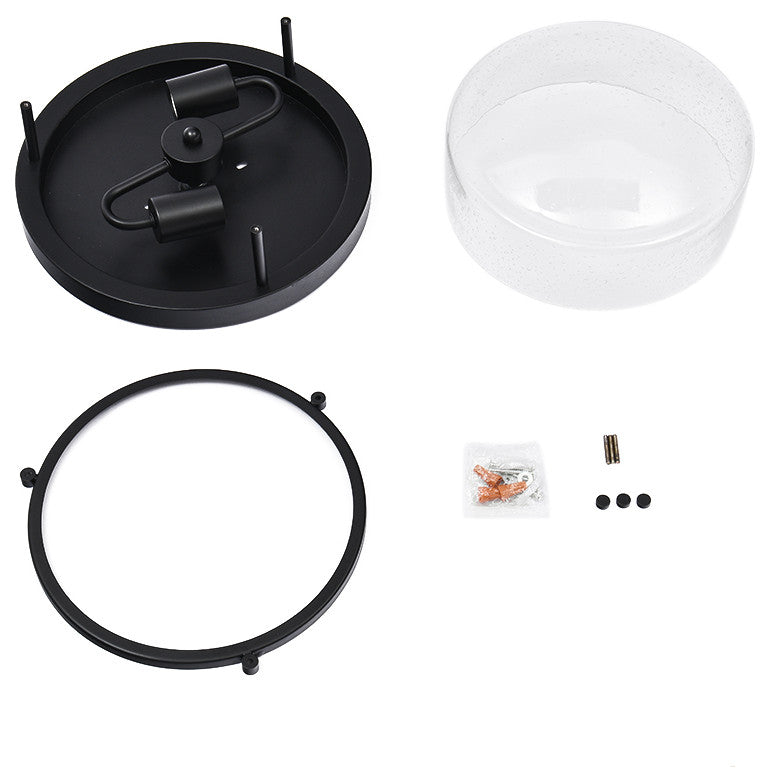 This 2-light seeded drum glass flush ceiling light blends farmhouse and modern styles with its metal frame and seeded glass shades in a timeless black finish. The seeded glass drum shades are gracefully supported and secured by the metal frame, enhancing the visual appeal of your interior. Suitable for two E26-base bulbs (bulbs not included), this seeded glass mount ceiling light casts a warm and even glow in all directions, making it ideal for bedrooms, dining rooms, entryways, hallways, and living rooms. It is an excellent choice to enhance various areas of your home with its versatile design.