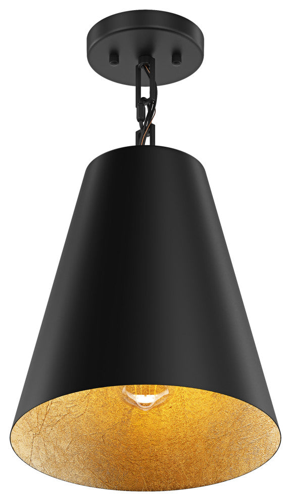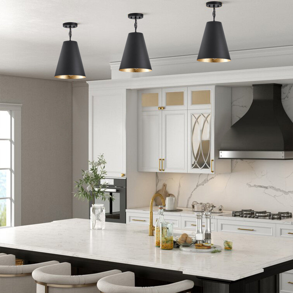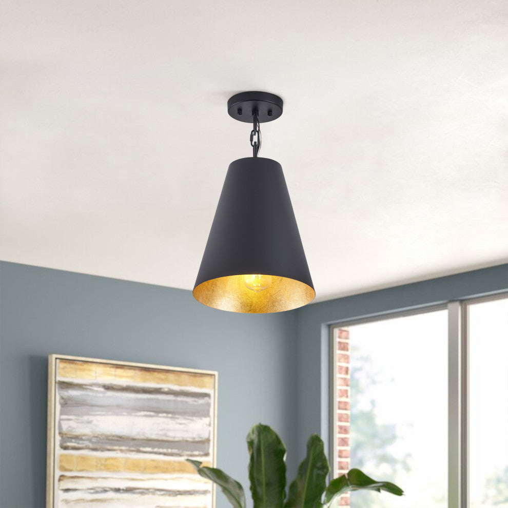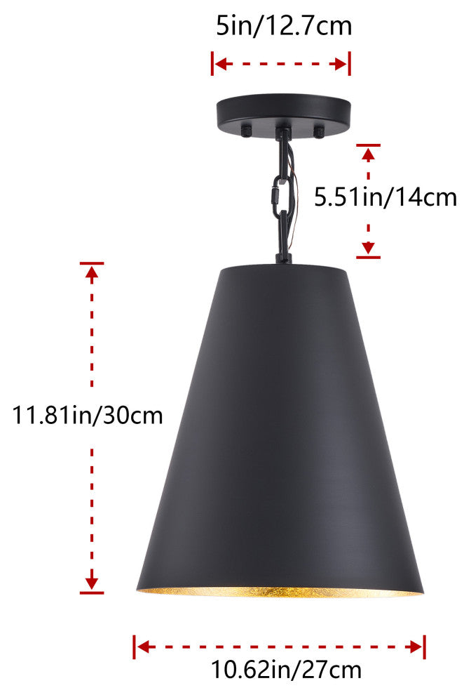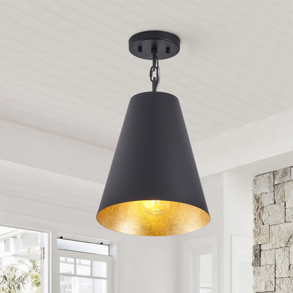 Farmhouse Gold Leaf Inside Pendant Light Fixture with Cone Metal Shade, Black