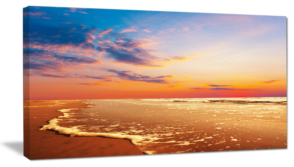 The Fascinating Beach with Flowing Waves canvas art print is sure to make an impression on anyone who sees it. This artwork is gallery wrapped around a 1-inch solid wood frame and arrives carefully packaged and entirely ready to hang on the wall. Design Art only uses the highest resolution and pigments to ensure a crisp colorful print that is never faded or pixelated. This artwork is sure to be a conversation starter in any home or office.