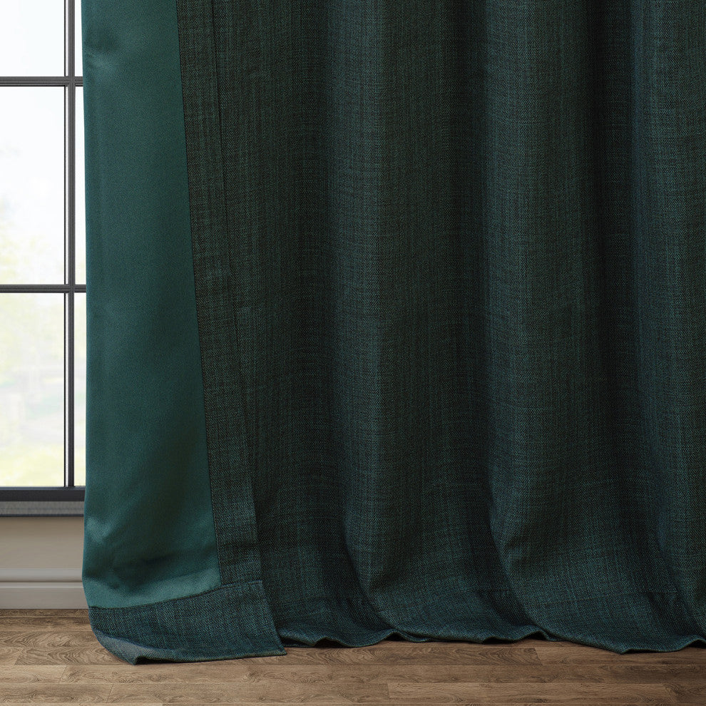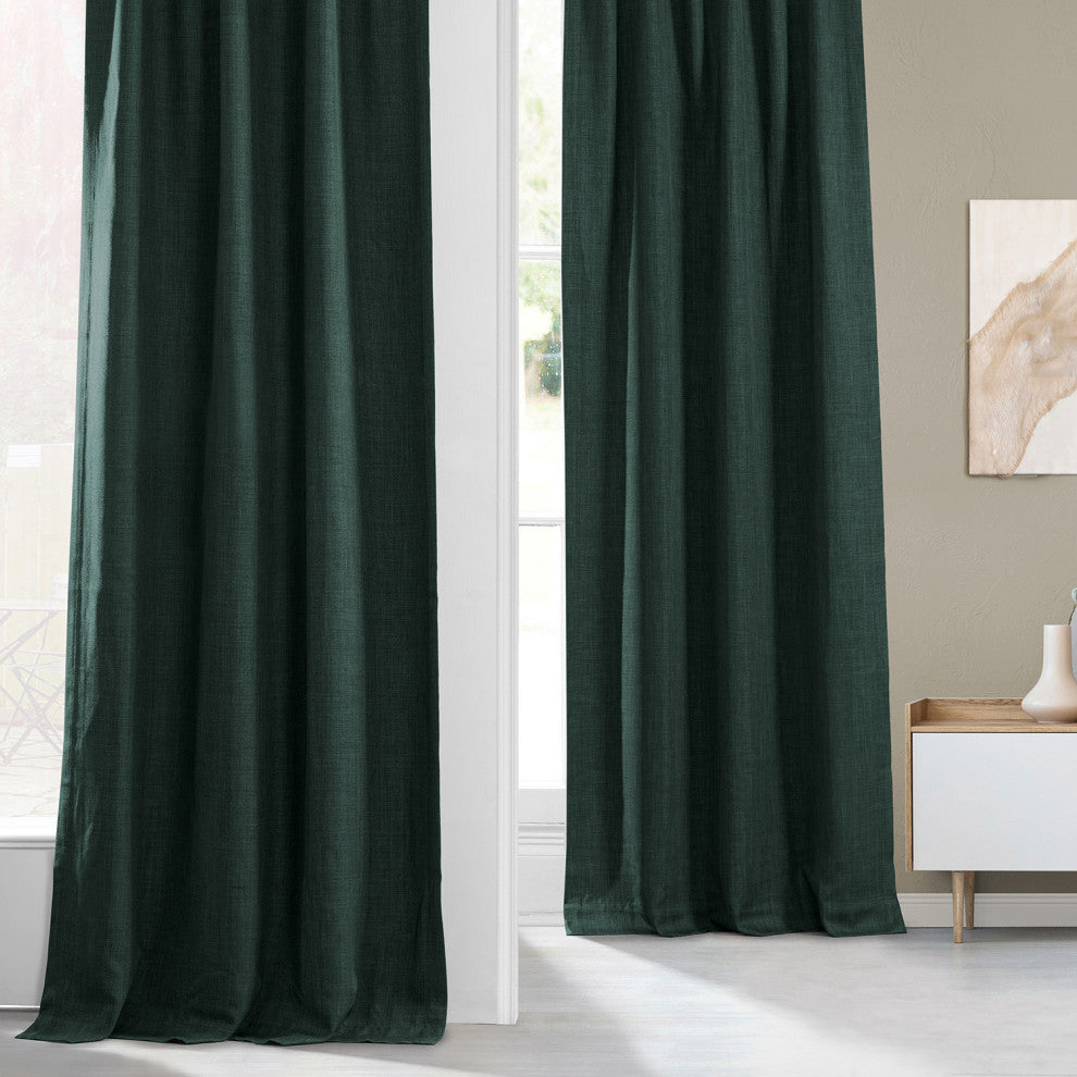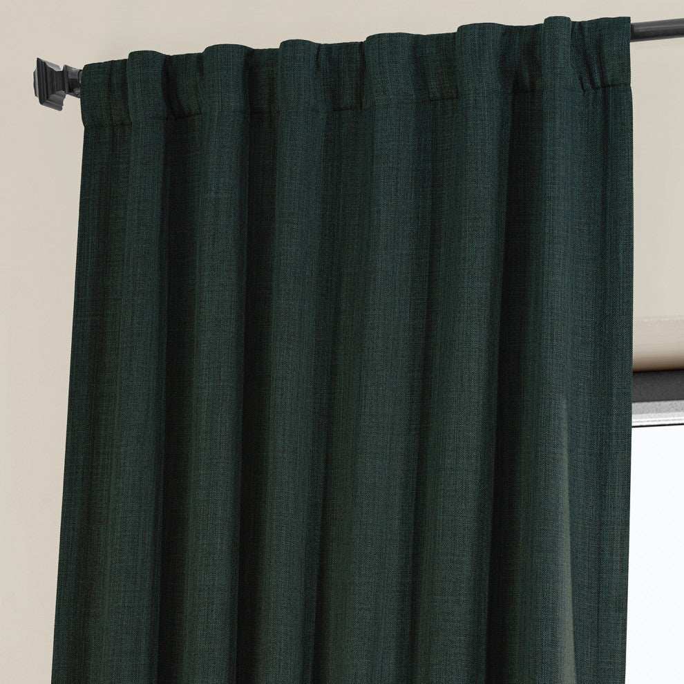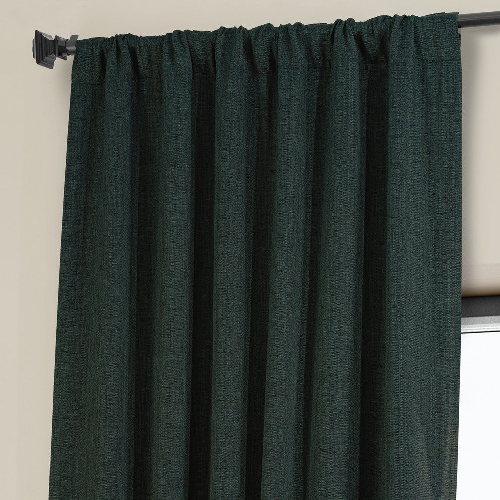 Faux Linen Darkening Curtain Single Panel, Focal Green, 50"x108"