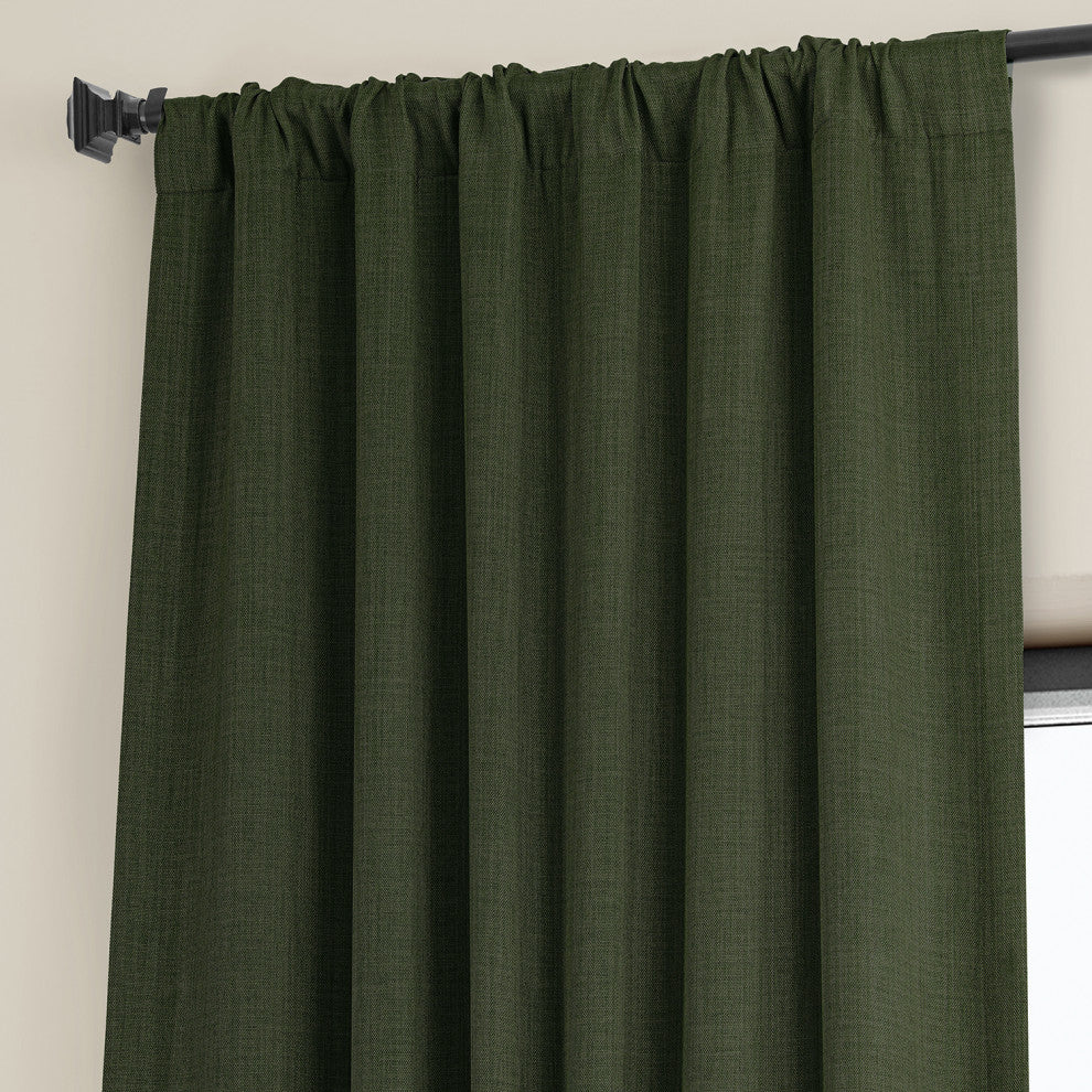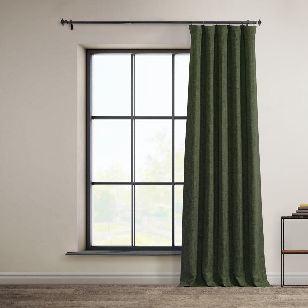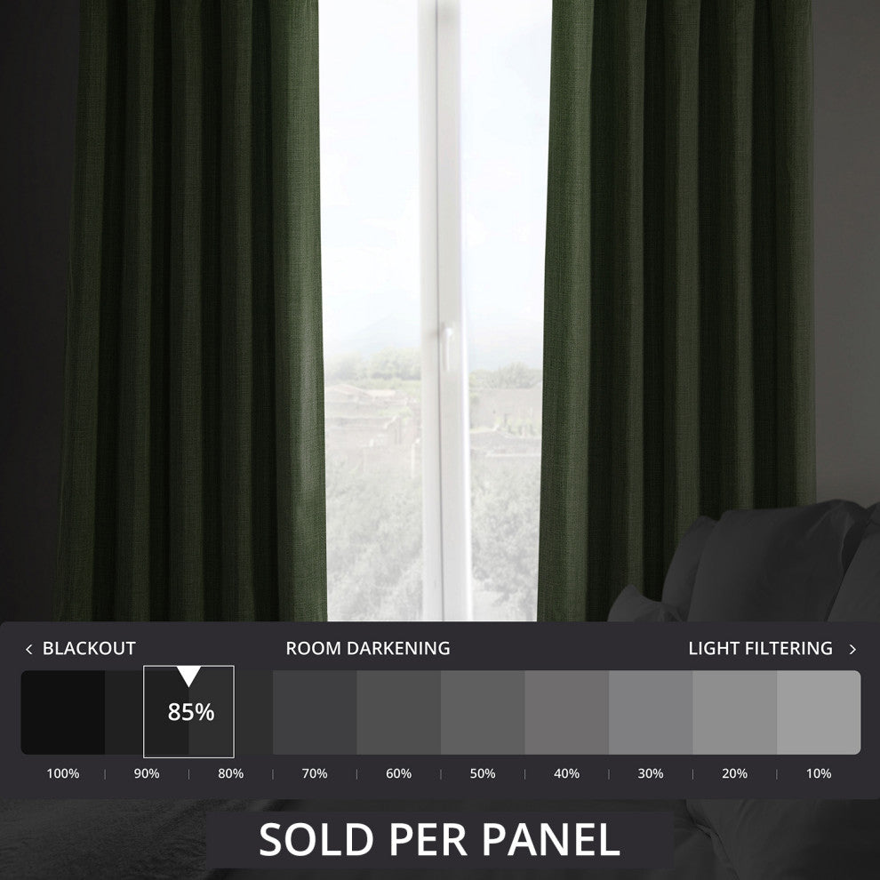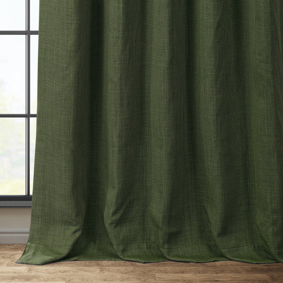 Faux Linen Darkening Curtain Single Panel, Tuscany Green, 50"x108"