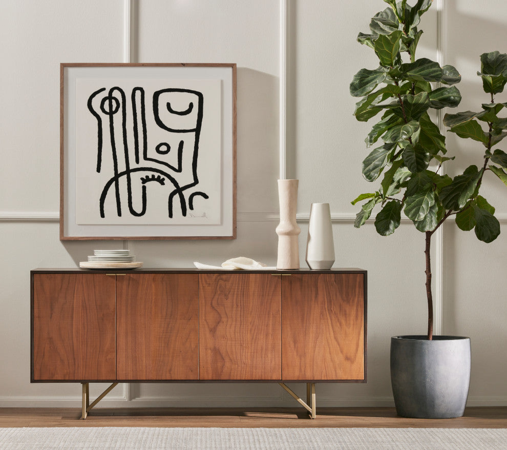 Driven by modern minimalism, artist and graphic designer Dan Hobday''s unique rendering is framed within rustic walnut for a clean, museum-quality look. Handmade in Austin, Texas.