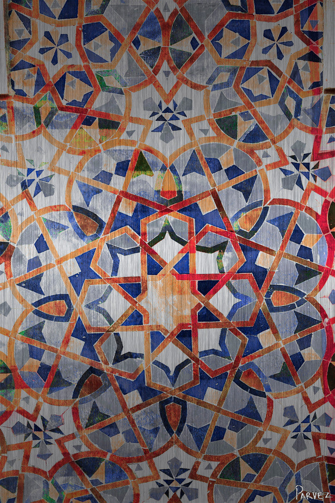 "Figuig" Wall Art on Wood, 24"x36", Brushed Aluminum