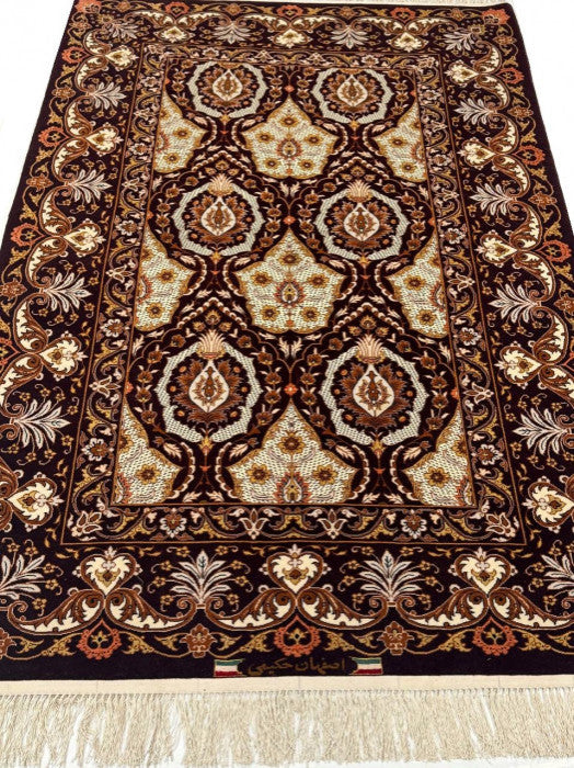 Fine Hand Knotted Persian Silk & Wool Isfahan 3'4"x5'
