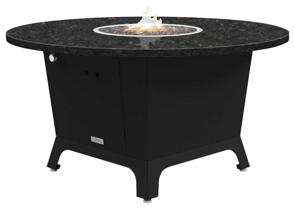 Fire Pit Table 55"D, Natural Gas, Black Pearl Granite Top, Black