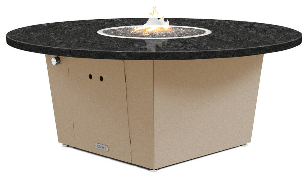 Fire Pit Table 55"D, Propane, Black Pearl Granite Top, Beige