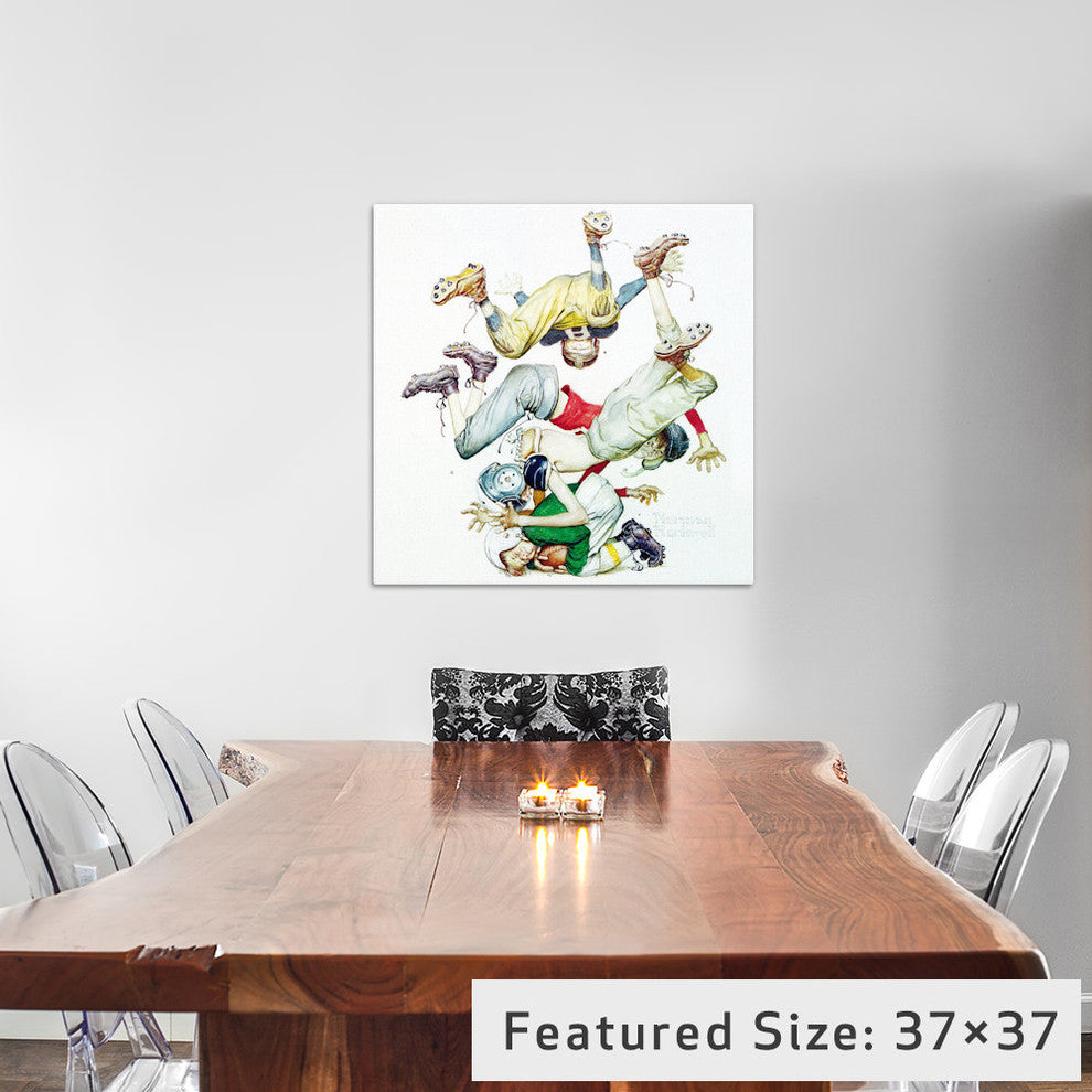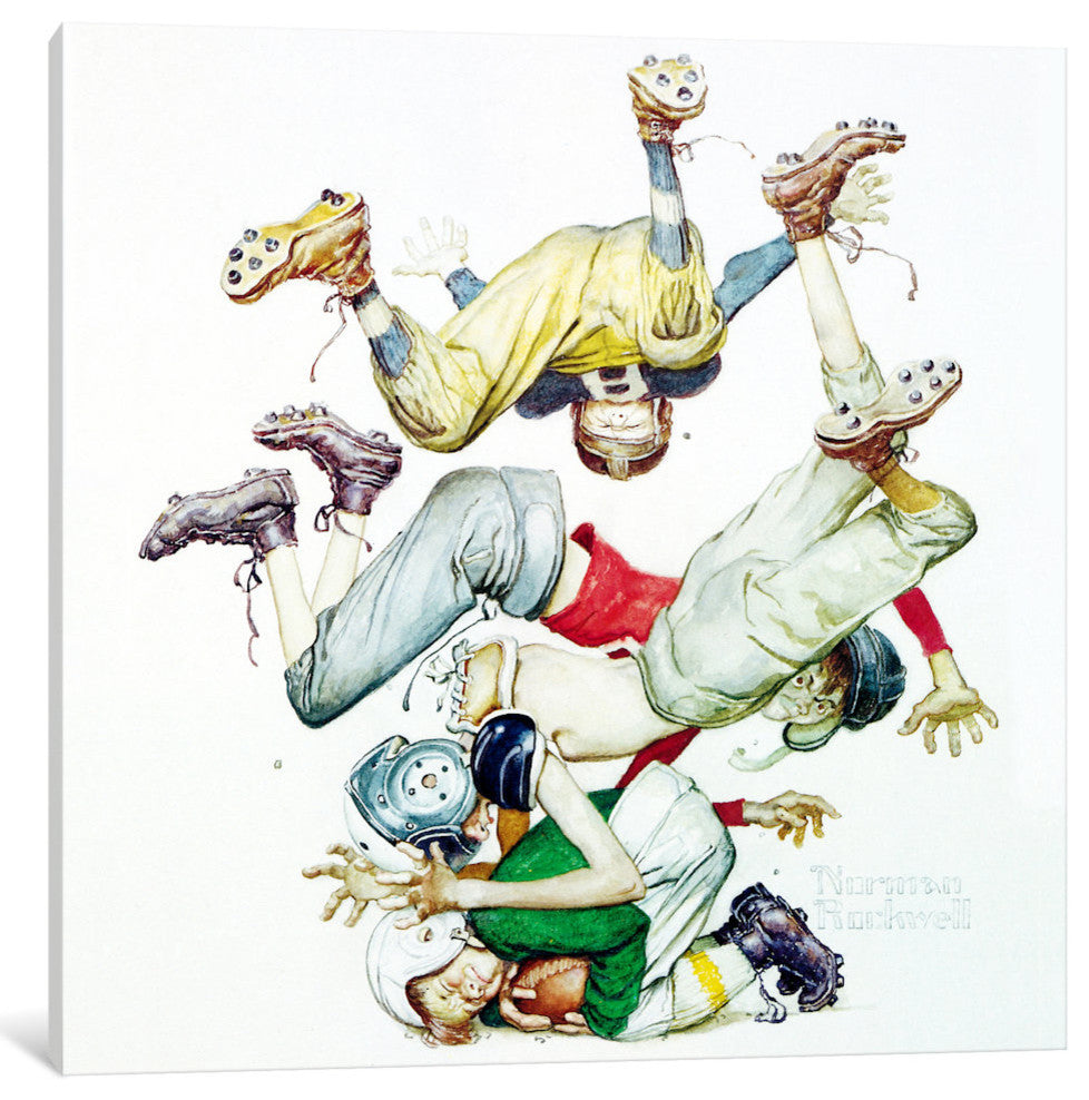 "First Down (Four Sporting Boys: Football)" by Norman Rockwell, 26x26x1.5"