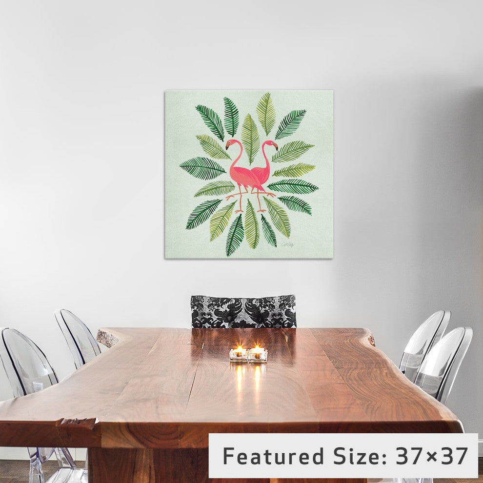 "Flamingos Green Artprint" by Cat Coquillette, 26x26x1.5