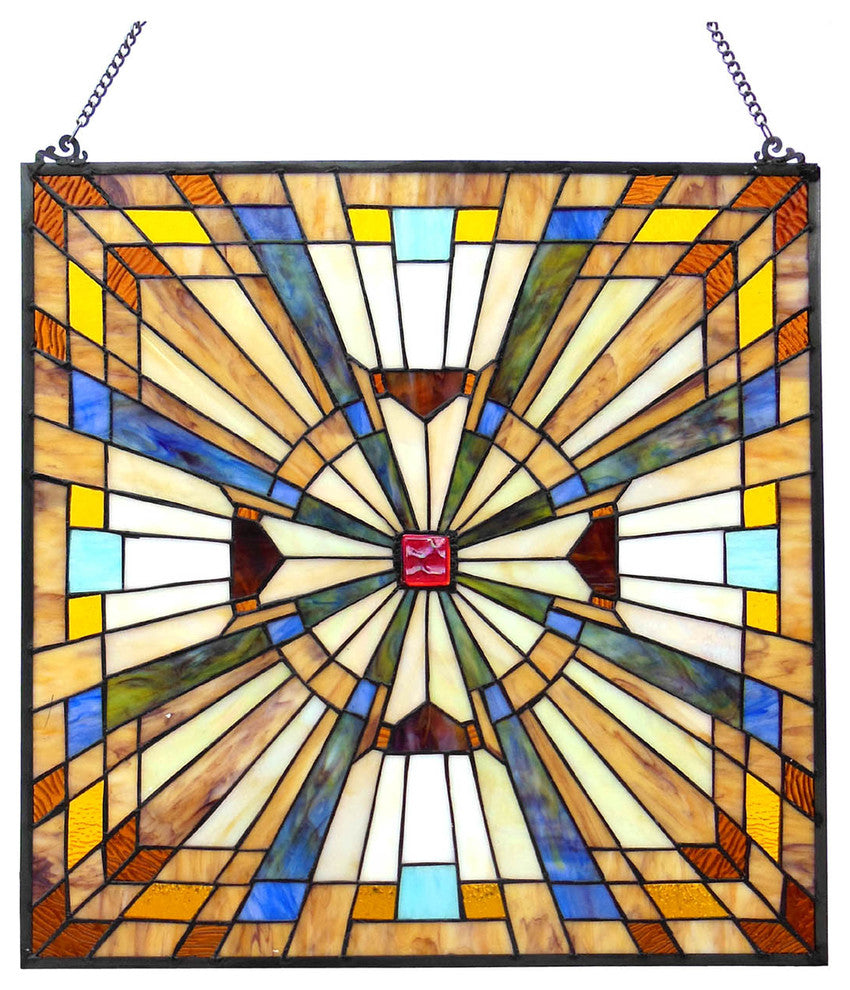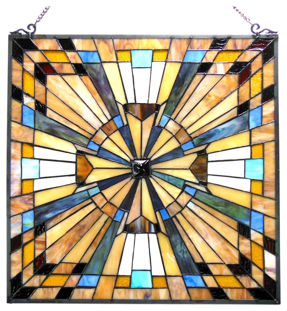 Flare, Tiffany-Glass Mission Square Window Panel 24"