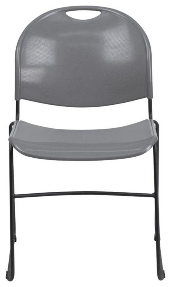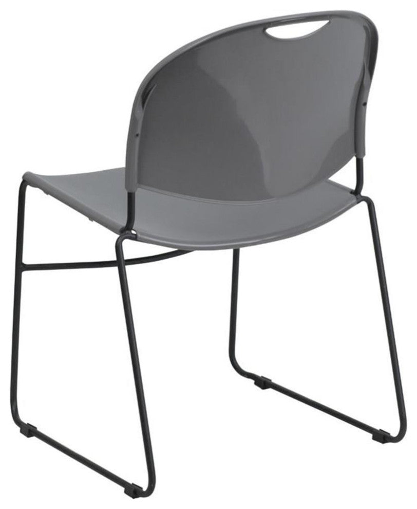 Acquire seating for any environment with these versatile sled base stack chairs. The ergonomic design contours to your body for an amazing seating experience. Host parties and game night at your home without guests having to bring their own chairs. These multipurpose stack chairs are transported easily by the carrying handle and can be stacked on our compatible sled base stack chair dolly to transport multiples. Line these chairs up for a uniform look in your conference center, training room or business center. After conferences these chairs stack neatly in a corner, up to 35 high to vacuum carpeted floors. Add comfort to your home, hair salon, office, waiting room, lunchroom, classroom or adult education center with these heavy-duty plastic stack chairs.Features: • Finish: Gray and Black • Material: Metal and Plastic • Chrome sled base frame with non-marring plastic floor glides • Ergonomically contoured gray plastic back and seat • Carrying handle to better transport • No-fade infused polypropylene material • 15 Gauge steel frame • Stack Quantity: 35 • Designed for commercial use • Warranty: Limited Lifetime Frame - 2 Year PartsSpecifications: • Product Dimensions: 32" H x 19" W x 21" D • Product Weight: 8 lbs • Seat Dimensions: 17" H x 17.5" W x 17" D • Product Dimensions: (Back) 16" H x 17.5" W • Weight Capacity: 880 lbs