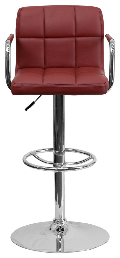 Flash Furniture Quilted Adjustable Bar Stool with Arms in Burgundy