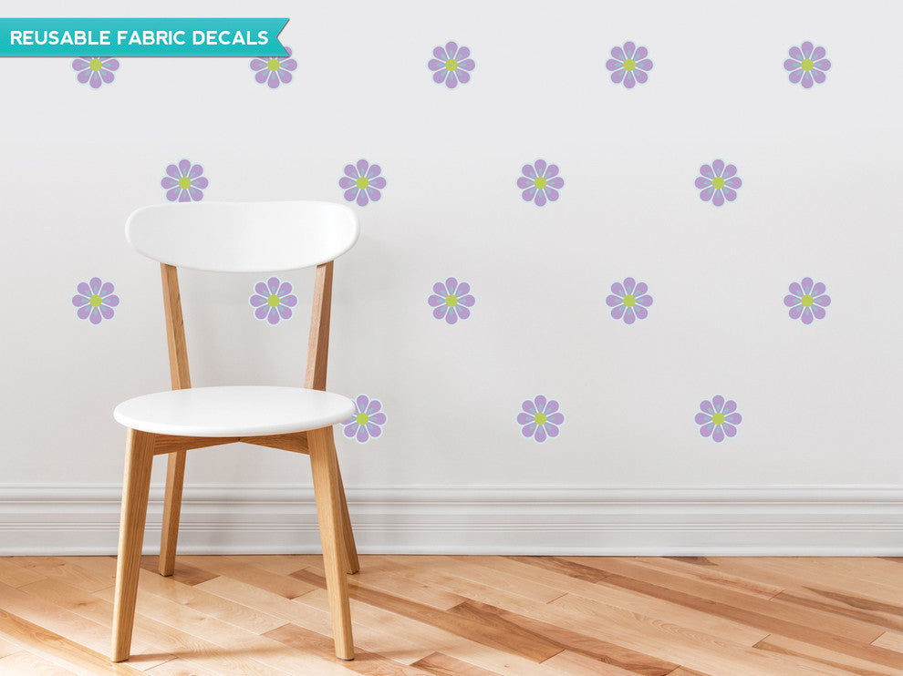 Flower Fabric Wall Decals, Set of 28 Flower Pattern Decals, Purple