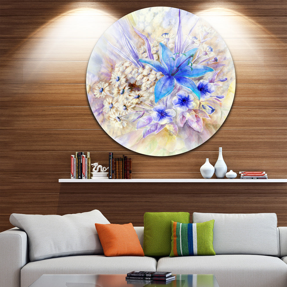 Flowers, Leaves Watercolor Art, Floral Large Disc Metal Wall Art, 36"