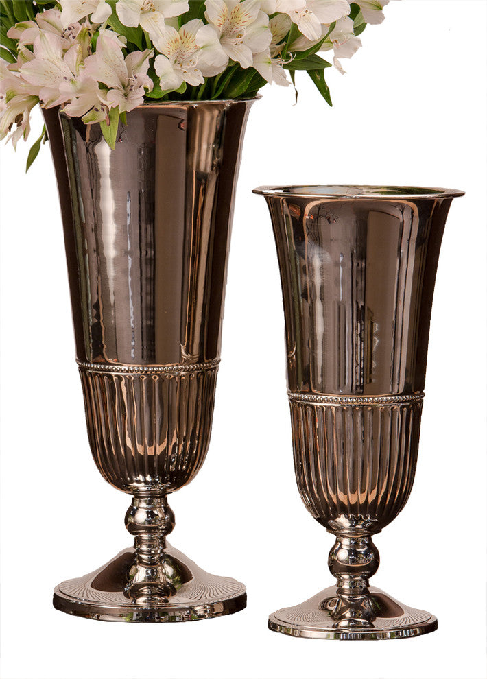 Give your home decor that little something extra special - that subtle little accent piece that ties the whole room together. Something like this traditional style fluted vase! It was made of brass, and has a nickel finish. It will blend nicely with any decorating scheme and highlight the look of your current home decor. It was manufactured in India, and measures 15.25"H x 7"D.