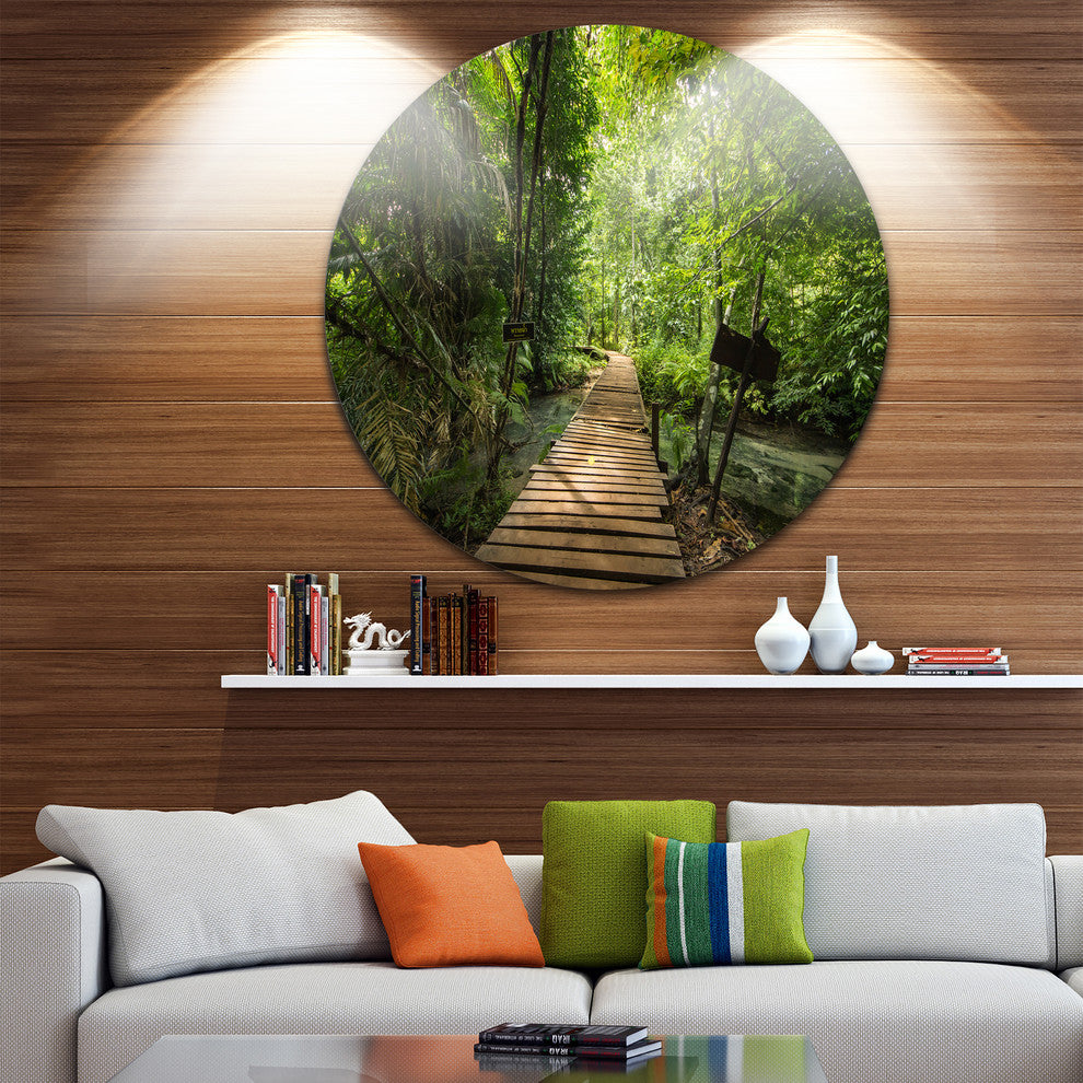 Forest Way To Emerald Pool, Landscape Photo Disc Metal Artwork, 36"